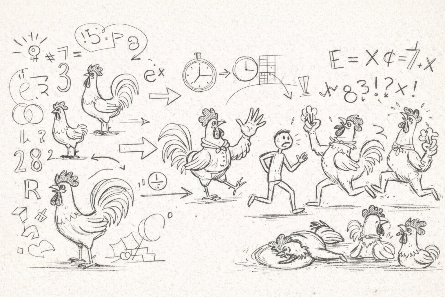 O jogo começa antes do jogo. Três galos parados, atentos demais para quem está fantasiado, tentando não errar antes da hora. O sinal toca, o corpo dispara e a escolha acontece rápido, quase sem pedir licença. A conta perde a calma, vira pressa, e a decisão já está em movimento.